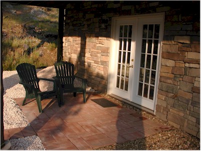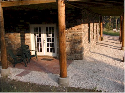 levels with huge wrap around deck & huge granite outcroppings. Gas
